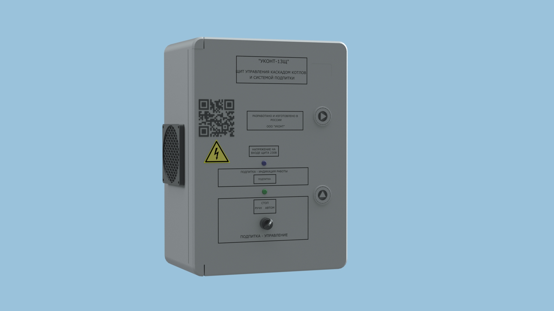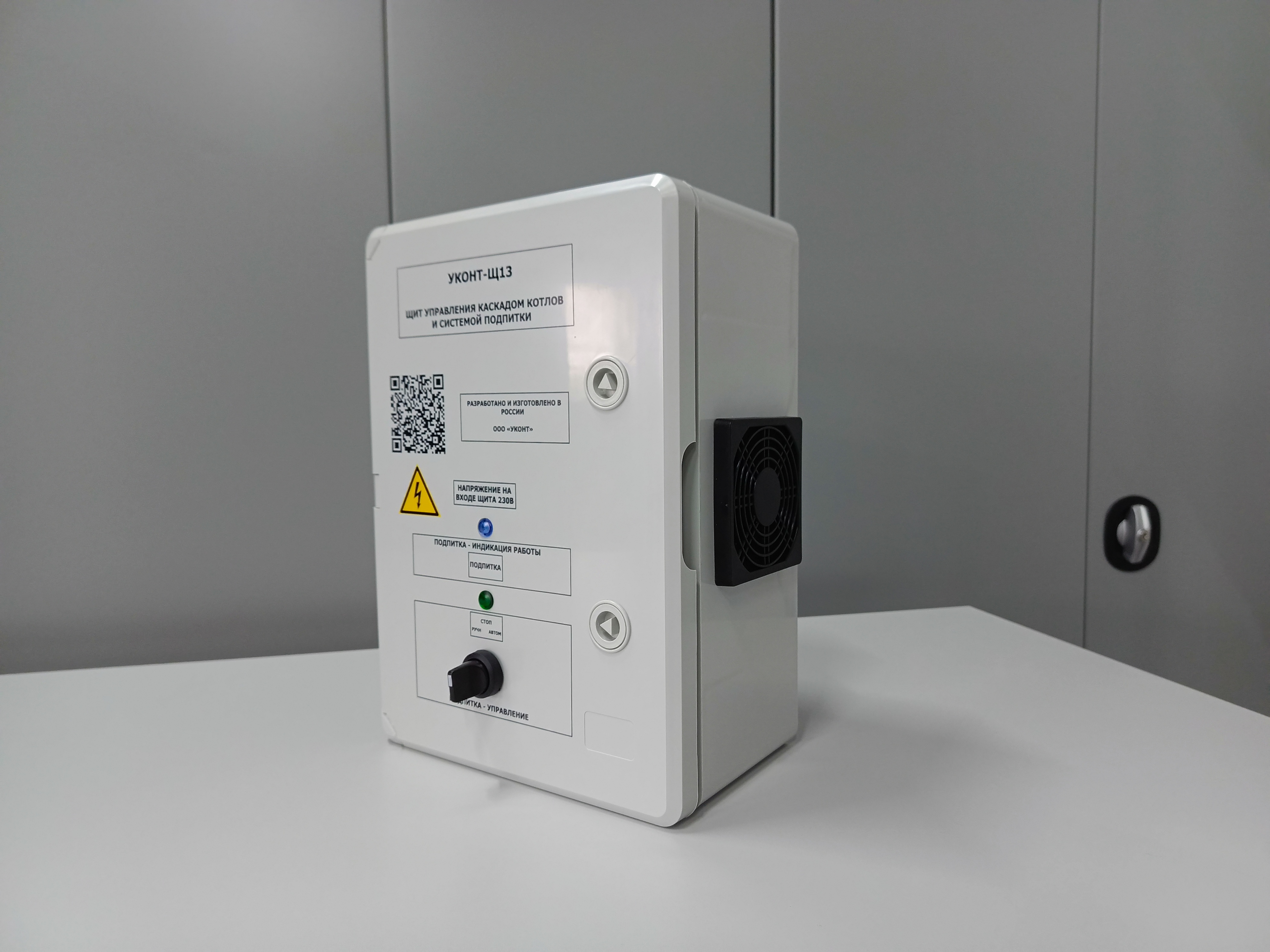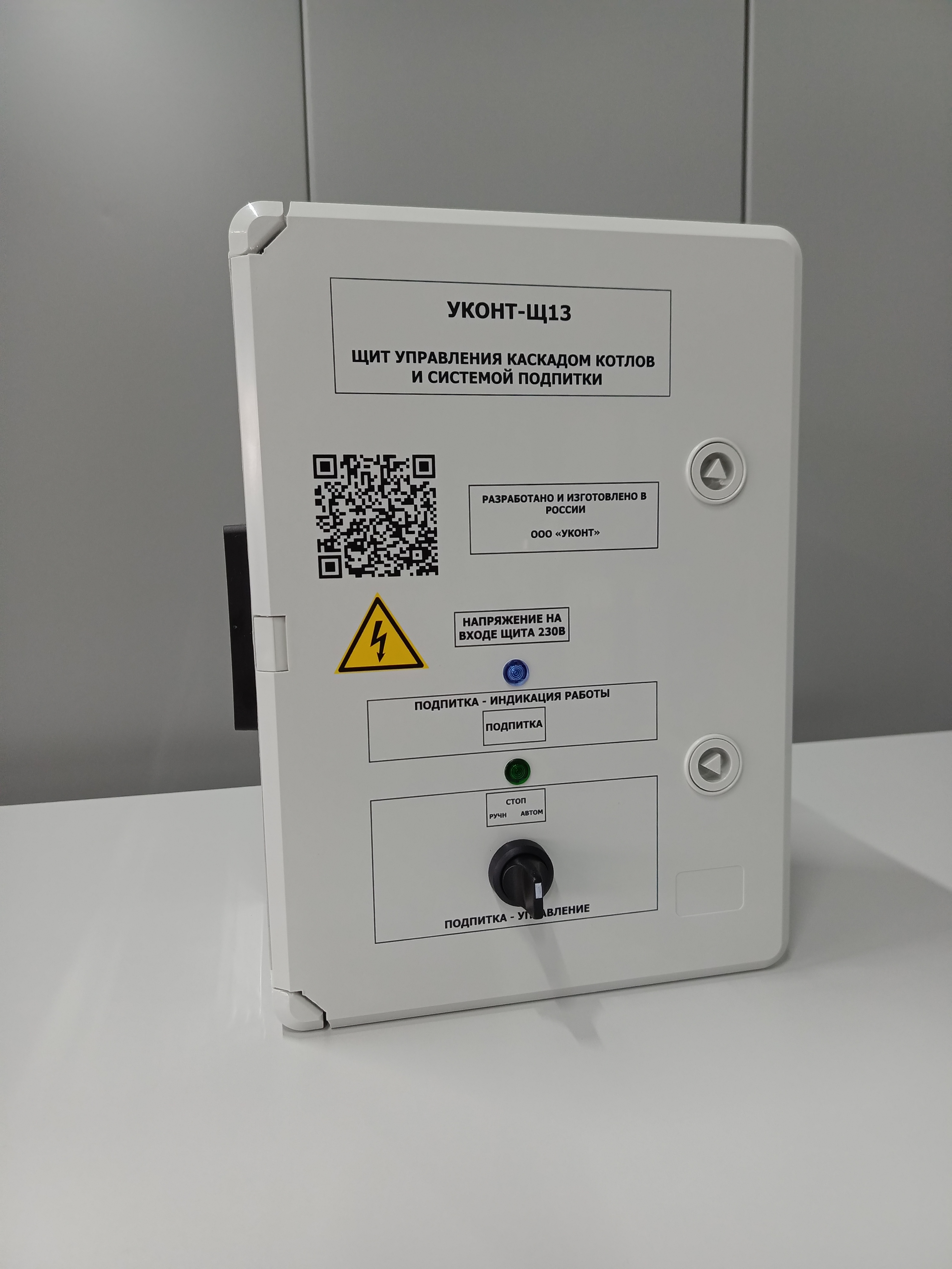 Управление каскадом котлов с графического контроллера "УКонт-П7" или дистанционно через интернет через щит диспетчеризации и безопасности "УКонт-Щ14".