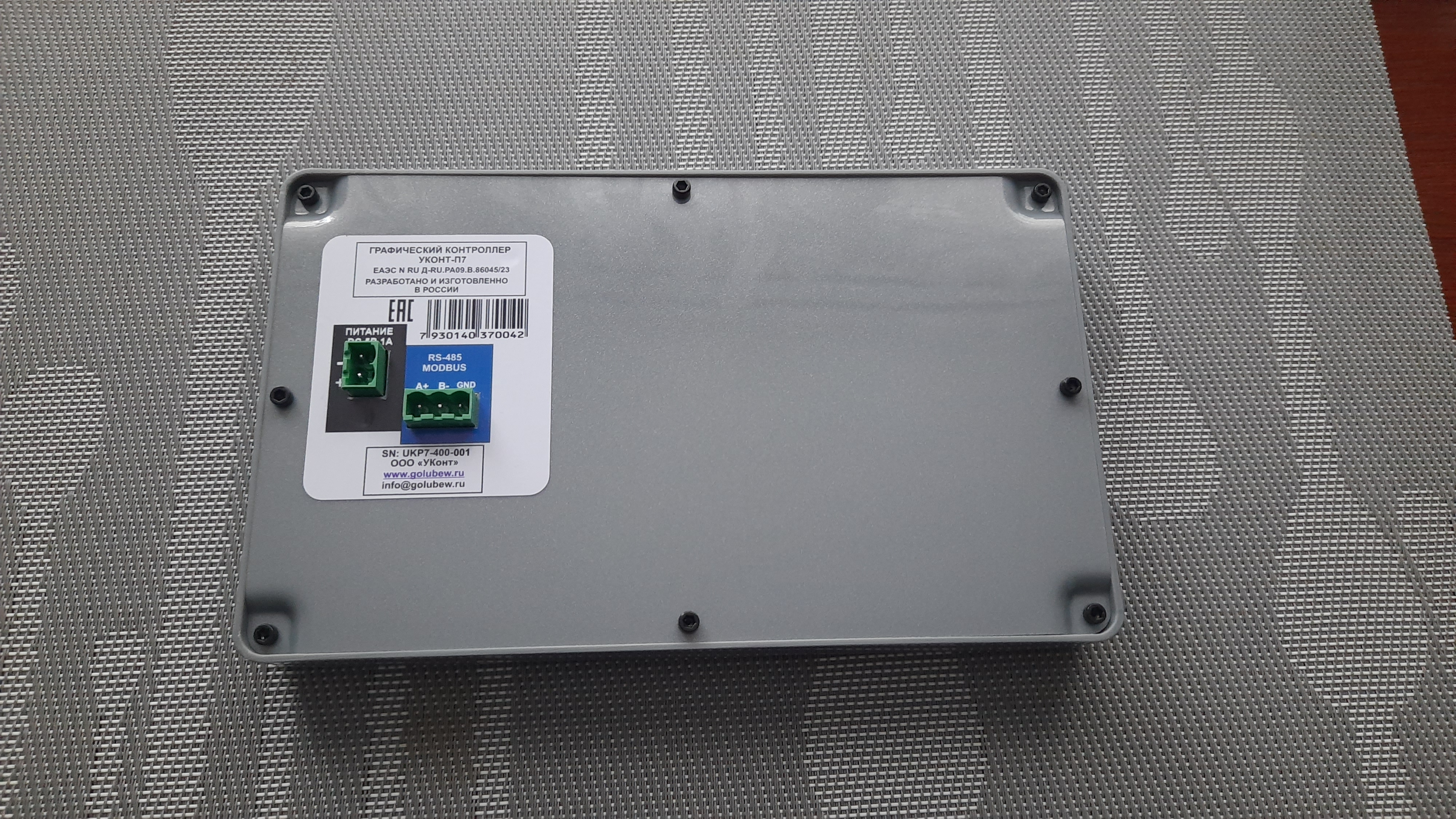 Графический контроллер “УКонт-П7.1” подключается по интерфейсу RS-485 ко всем щитам (блокам) “УКонт”, находящимся на объекте и объединенным в сеть по протоколу ModBus. На шине он должен быть первым или последним.