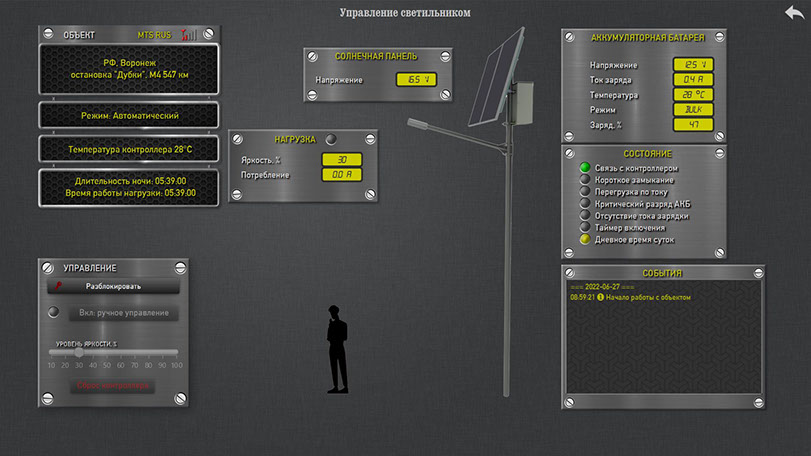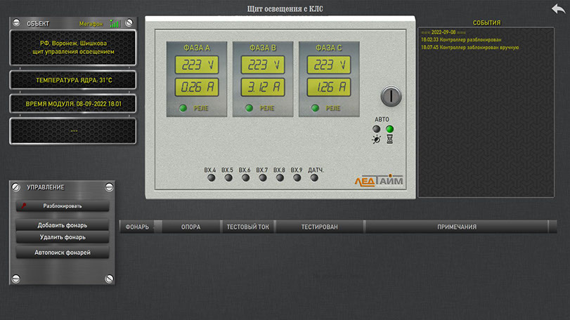 - возможность ручного включения-выключения освещения