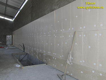 На трубы крепим арматурную сетку и начинаем черновую штукатурку